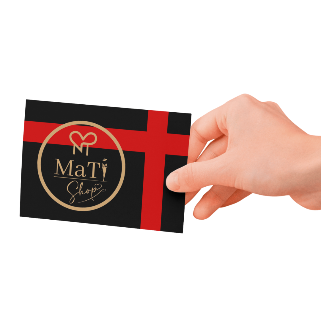 Non sai cosa regalare? Con le Gift Card di Mati Shop puoi fare un dono unico: dai la possibilità di scegliere il capo perfetto tra le nostre collezioni curate con amore. Un regalo che emoziona e fa sentire unica ogni donna.
